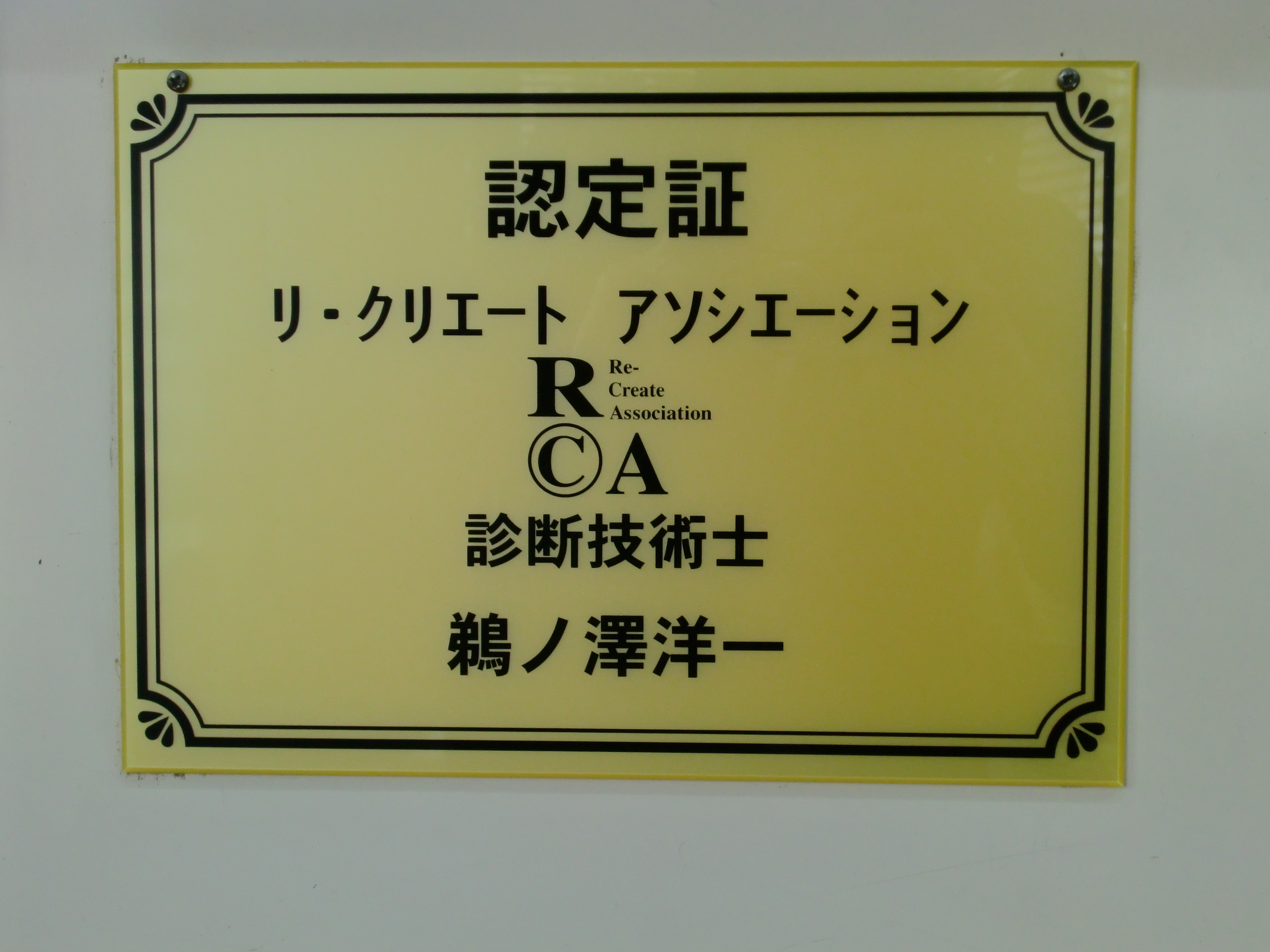 RCAという勉強会に毎月参加し、診断技術の向上と、職業を通しての社会へのお役立ちについて研究しています。「RCA診断技術士」という資格を有することで、お客様のご要望により細かく的確に対応することを目指しております。